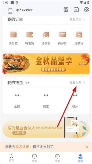 2、在个人页面中,点击我的钱包右侧的查看全部选项。