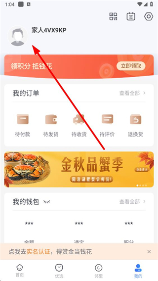 1、打开建业APP,在我的页面点击个人头像进入个人信息页面。