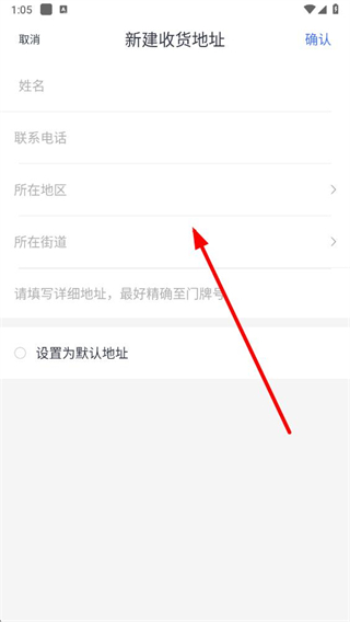 4、在新建收货地址页面,输入详细信息,完成后点击确认按钮即可添加收货地址信息。