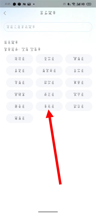 4、在添加城市页面,点击选择要添加的城市,完成添加。