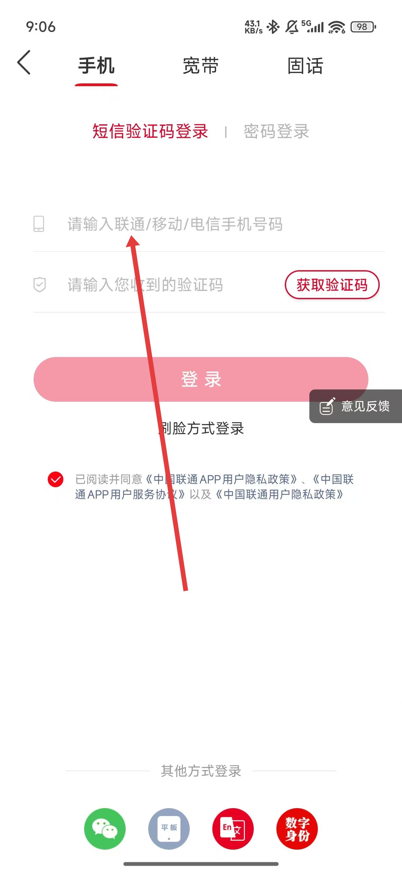 中国联通怎么用验证码登录