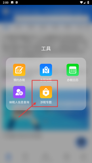 2、在工具页面,点击涉税专题选项,进入专题列表页。