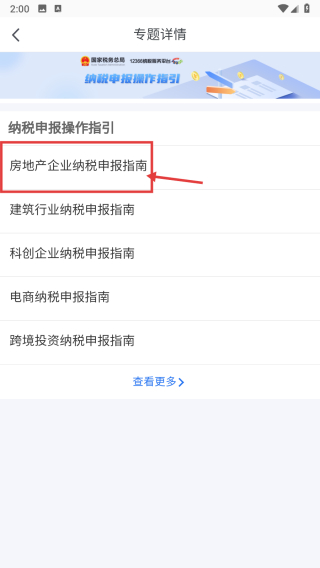 4、在操作指引详情页,点击房地产企业纳税申报指南,查看该行业纳税申报具体指引。