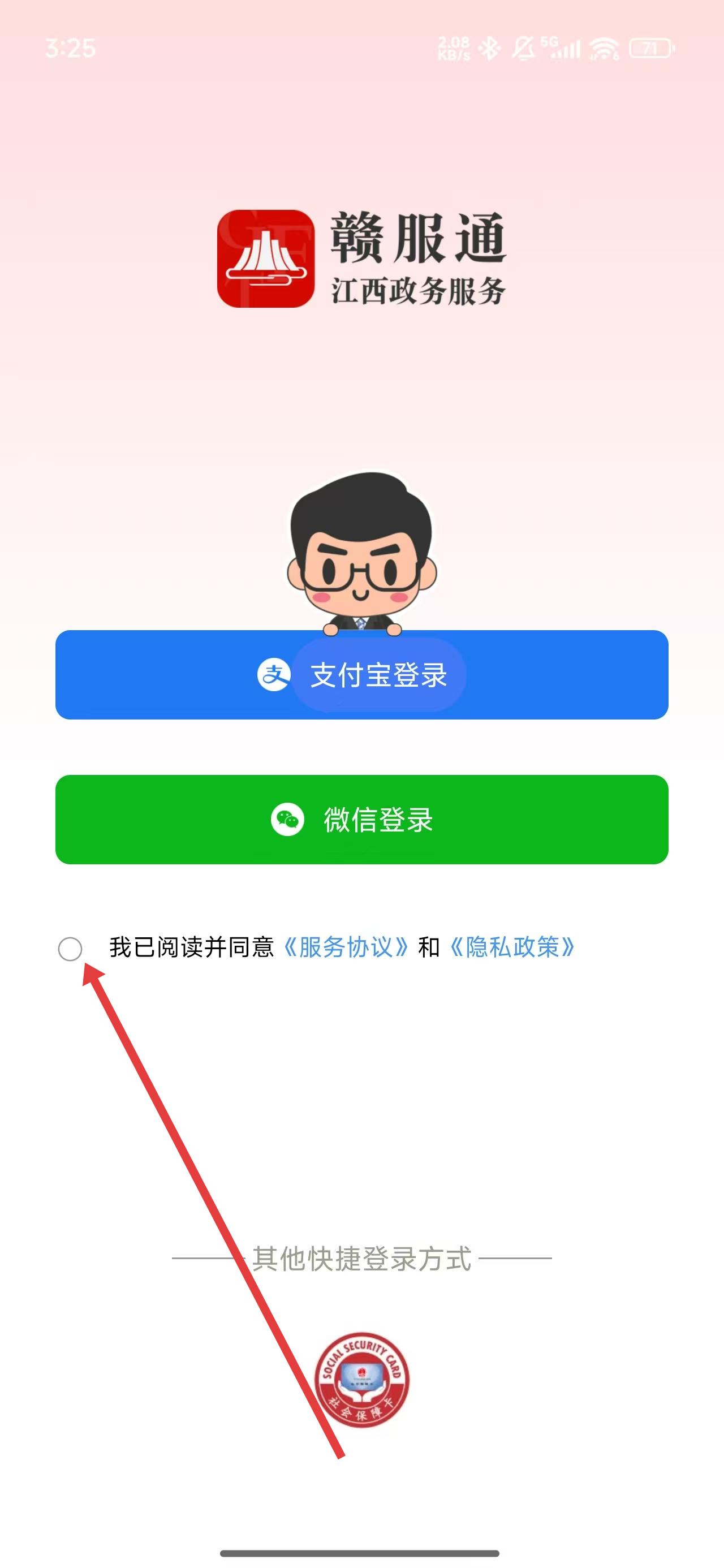 01、打开赣服通app或者在支付宝中搜索“赣服通”选择官方应用进入,切换所在地,并授权登录