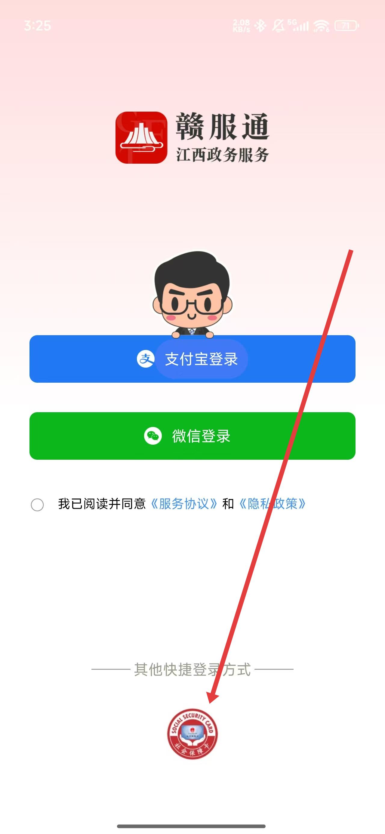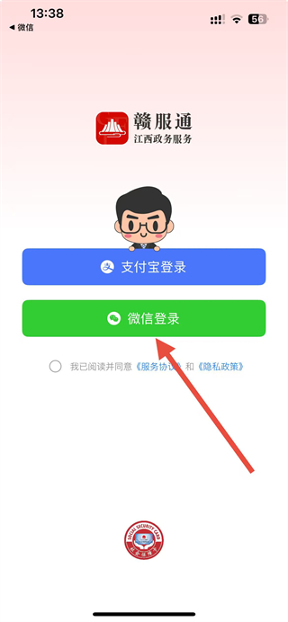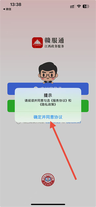 1、打开赣服通app后,点击弹窗中的同意按钮,进入使用。