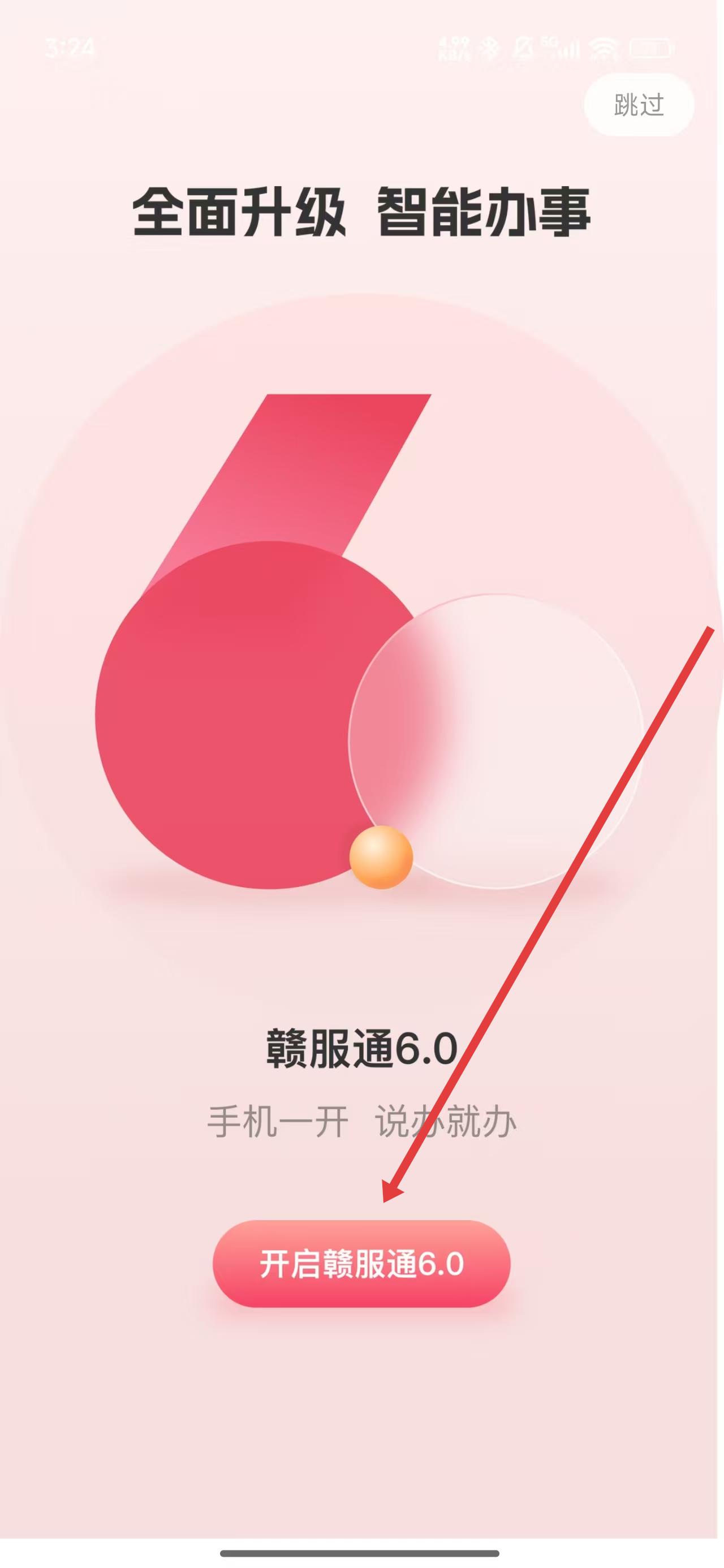 2、在赣服通使用引导页中,点击开启赣服通6.0按钮进入。