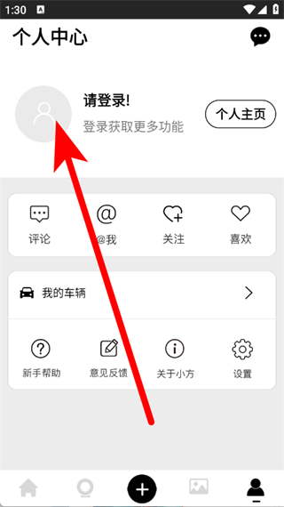1、打开小方行车记录仪,点击底部导航栏我的,进入个人中心。