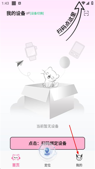 1、在小喵潮人首页,点击右下角我的选项,进入个人页面。