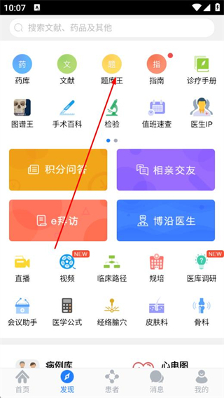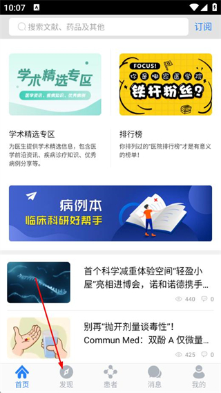 1、打开医库APP,点击底部发现选项。
