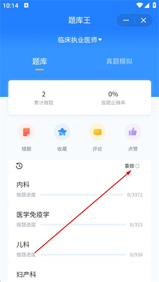 3、进入题库王后,点击重做按钮。