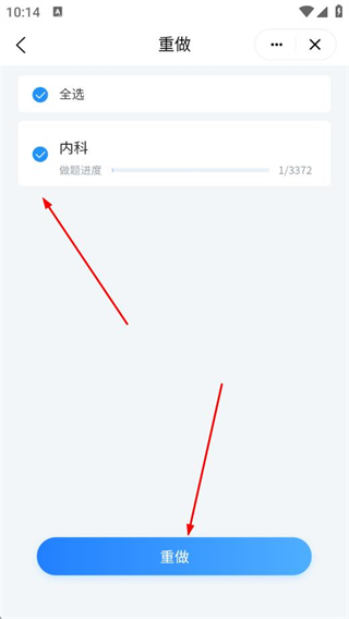 4、选择要重做的科目,点击底部重做即可。