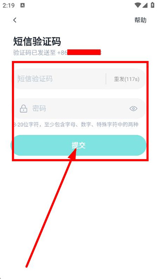 4、在短信验证码页面,输入验证码和密码后,点击提交,完成注册操作。