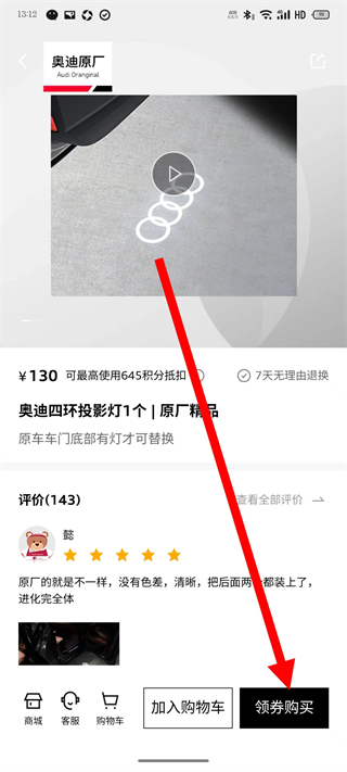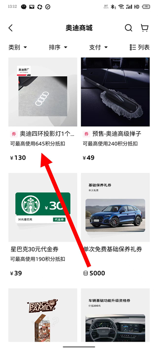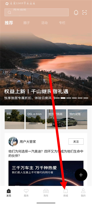 1、打开一汽奥迪,点击底部商城,进入页面。