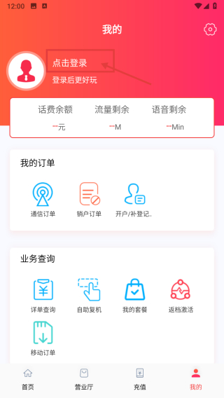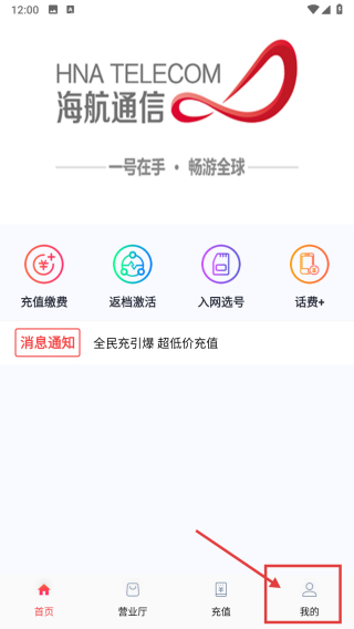 1、打开通信服务类APP,点击底部我的选项,进入个人中心页面。