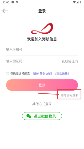 3、在登录界面,点击账号密码登录选项,切换至账号密码登录页面。