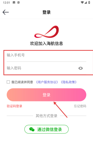 4、在账号密码登录页面,输入手机号和密码,勾选协议后点击登录按钮,完成账号登录操作。