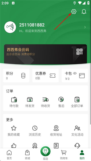 2、在个人中心界面点击右上角设置图标,进入设置界面。