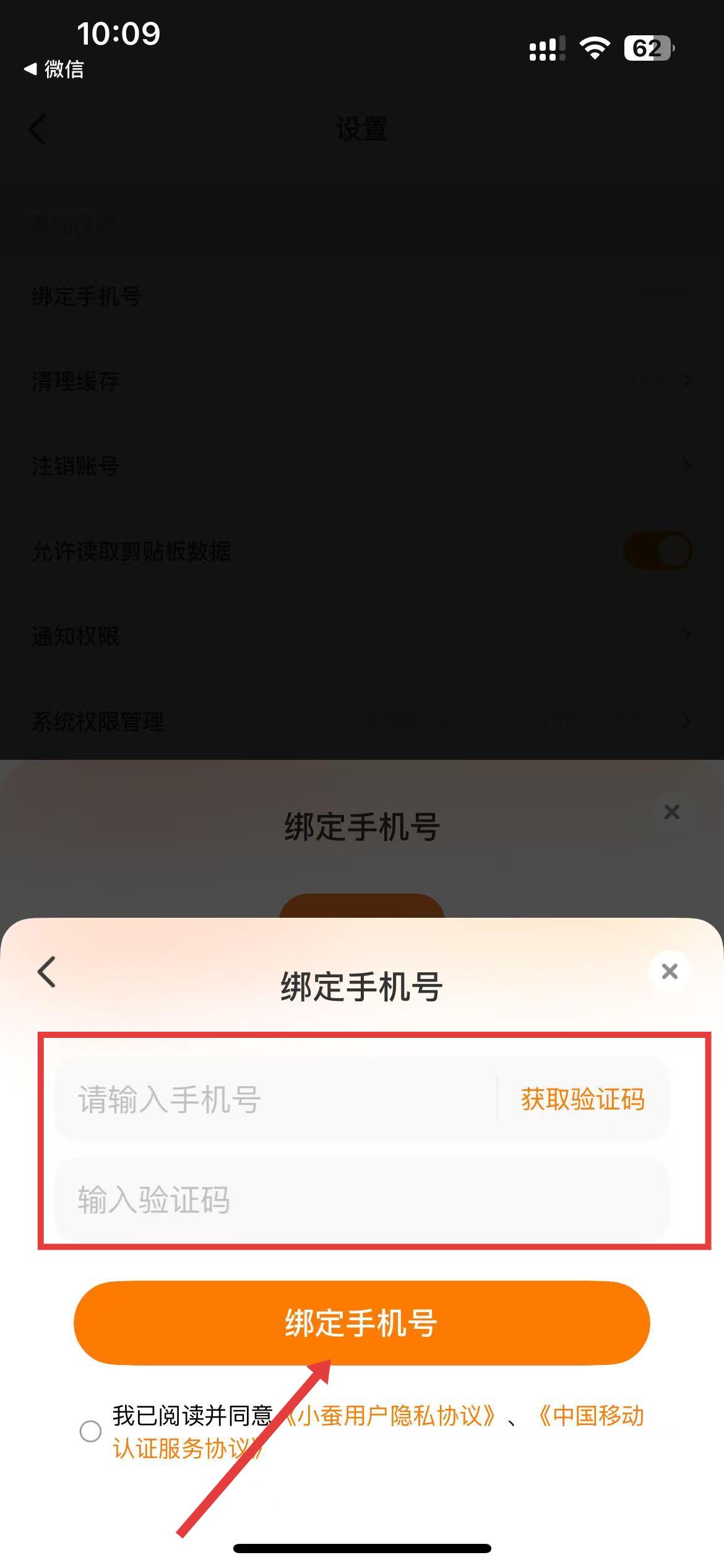 4、在绑定手机号页面,输入要绑定的手机号,获取验证码,勾选同意相关协议,最后点击绑定手机号按钮,完成手机号绑定。