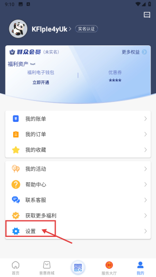 1、打开综合服务类APP,点击底部我的选项,进入个人中心页面。