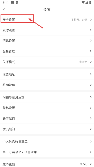 3、在设置界面,点击安全设置选项,进入安全设置页面。