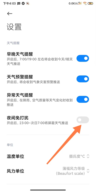 小米天气怎么开夜间免打扰模式