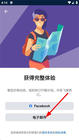 3、在登录方式选择页面,点击电子邮件,进入电子邮件输入页面。
