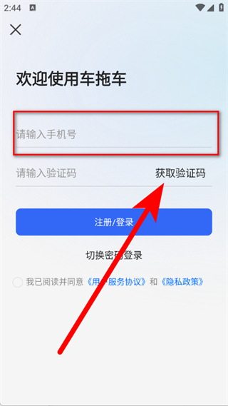 1、打开车拖车平台,在弹窗中,点击同意并继续。