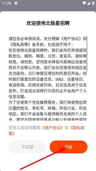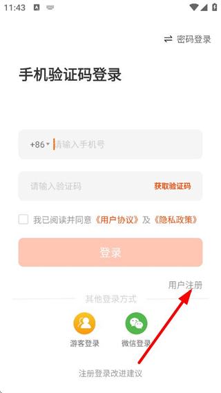 1、在用户协议与隐私政策弹窗中,点击同意,进入登录注册页面。