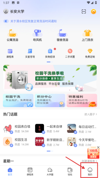 1、打开校园服务类APP,点击底部我的选项,进入个人中心页面。