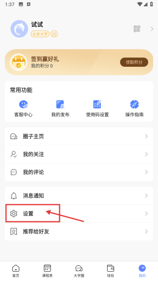 2、在个人中心页面,点击设置选项,进入设置界面。