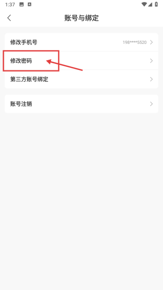 4、在账号与绑定管理页面,点击修改密码选项,推进密码修改流程。