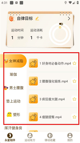 1、可在软件中选择各种分类下的运动视频进行锻炼。