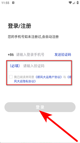 4、输入验证码并勾选协议后,点击登录按钮,完成登录。