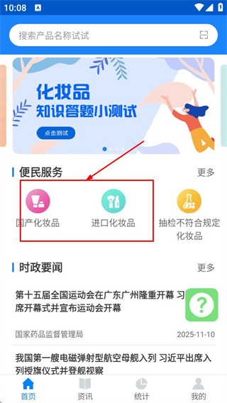 不仅提供产品信息查询,还包含化妆品科普知识,帮助消费者了解安全使用常识,同时开通线上举报通道,方便反馈违法违规问题。