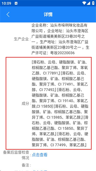 3、在化妆品详情界面下拉即可看到化妆品的成分。