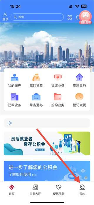 1、打开天津公积金app,点击右下角我的选项,进入个人相关页面。