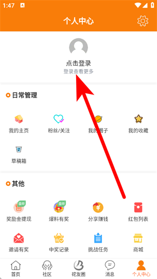 1、进入首页后,点击底部“个人中心,进入个人页面。