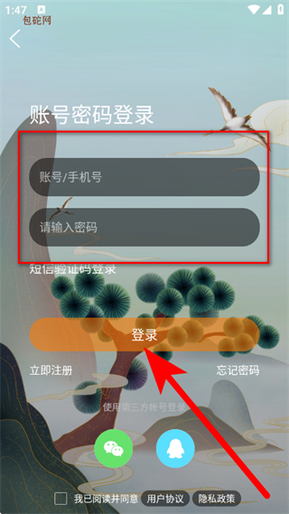 4、勾选用户协议和隐私政策后,点击登录按钮,完成登录。