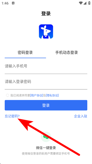 2、在登录页面,点击忘记密码,进入登录页面。
