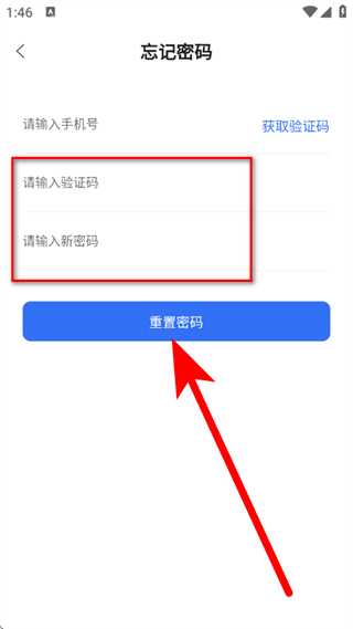 4、输入验证码并设置新密码后,点击重置密码,完成密码重置。