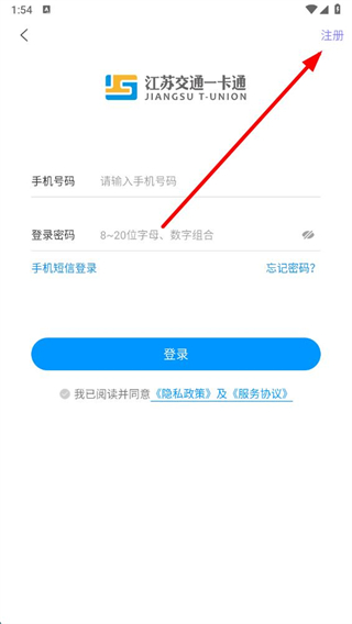 3、在登录页面,点击右上角注册选项,进入注册页面。