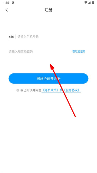 4、在页面输入手机号码和验证码,勾选已阅读并同意协议后,点击同意协议并注册按钮。
