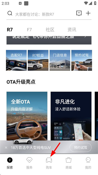 2、在购车页面选择车型后,点击配置F7可进入车型配置环节。