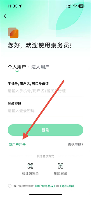 2、在登录页面,点击新用户注册选项,进入注册页面。