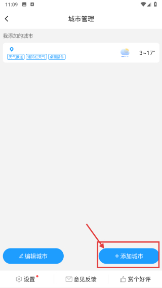 2、在城市管理页面,点击+添加城市按钮,进入快速添加页面。