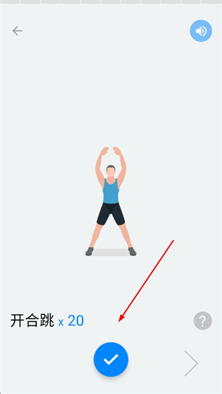 4、完成每个动作后点击蓝色对勾按钮,标记动作完成并继续后续训练。