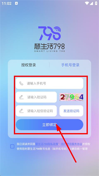 4、输入手机号、验证码、短信验证码,点击立即绑定,完成登录操作。