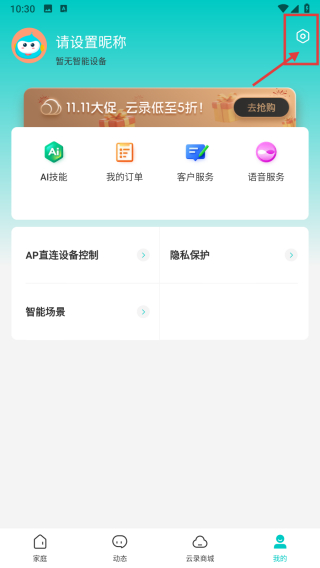 1、打开智能设备类APP,点击底部我的选项,进入个人中心页面。