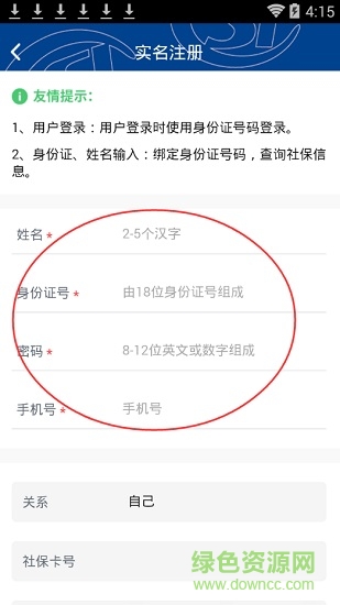 2、在实名注册页面,按照提示输入姓名、身份证号、密码、手机号和确认手机号。