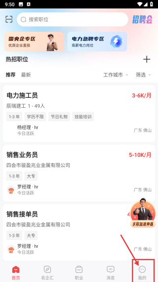 1、打开招聘类APP,点击底部我的选项,进入个人中心页面。